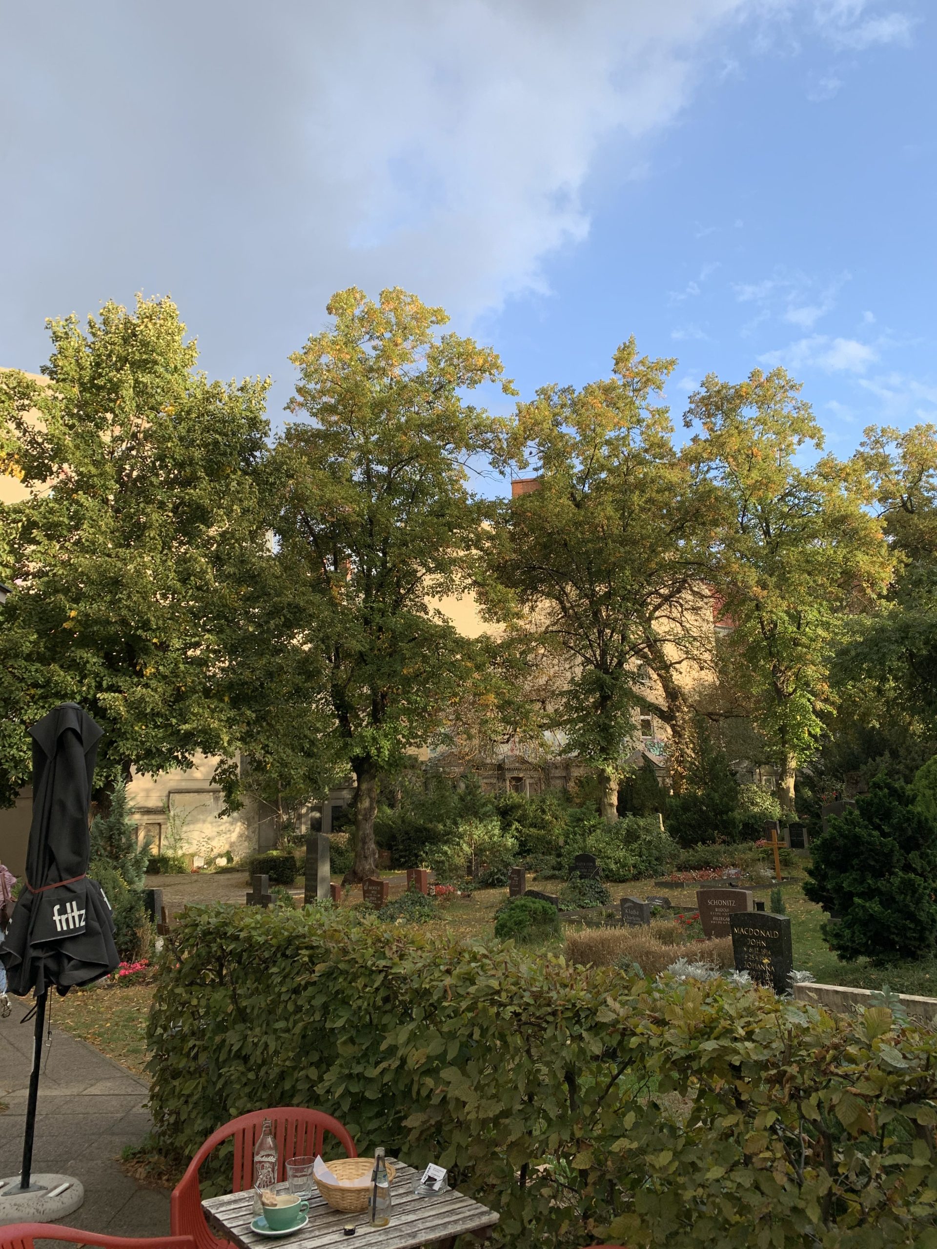 Groteszk pillanat akad még bőven, ha nyitott szemmel járunk a német fővárosban. Egy ismerősi ajánlás mentén találtam rá például a Jacobi kávézóra, ami az Alter St. Jacobi temetőben (a Neukölln kerületben) található. Tényleg bizarrul hangzik, de isteni kávét adnak, a teraszon pedig teljes nyugalomban tudtam dolgozni. Innen akár gyalogosan is, 20-30 perc alatt megközelíthető a Tempelhof repülőtér. Mennyi esélye volt annak, hogy a sétám első öt percében véletlenül egymásba botlottunk egy gyerekkori, magyar ismerősömmel? Berlin 3,5 millió lakosával azt mondtam volna, hogy nulla, de mégis megtörtént! Megöleltük egymást, majd nyugtáztam, tényleg van valami misztikus ebben a városban.