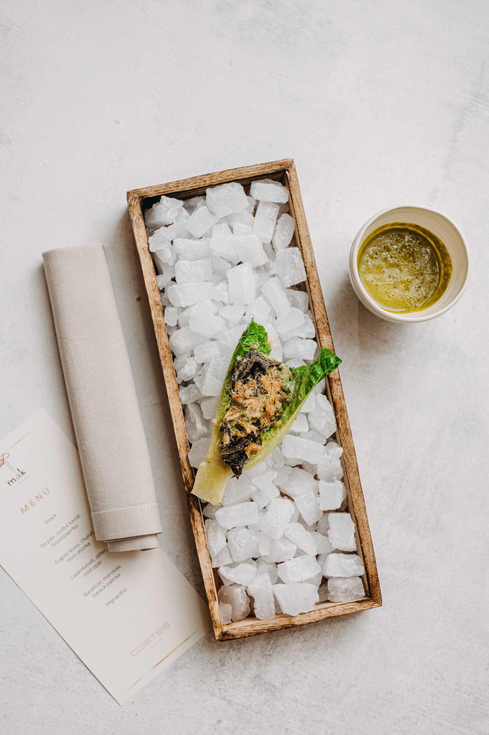 A MÁKtájak ötletével tulajdonképpen akkor értem révbe, amikor újra felvettük a fonalat a Covid után. Az új tulajdonos lehetőséget adott rá, hogy az étterem esszenciáját megtartva változtassunk egy kicsit a MÁK koncepcióján és degusztációs menüvel menjünk tovább. A MÁKtájak azóta formálódik. Hiába próbálnánk kiépíteni egy rendszert, hiszen minden táj és minden szezon más, minden alapanyagnak megvan a maga ideje. Legalább három hetet dolgoztunk azon, hogy a spárga felkerüljön az étlapra, de már le is kellett vennünk, mert vége a szezonnak. Ez folyamatosan pörgeti az agyunkat, mert oda kell figyelnünk, hogy minek mikor van szezonja, és ha az lejár, rögtön váltani tudjunk, új termelőt találjunk, más alapanyagokat hozzunk és valamilyen kreatív formában bemutassuk őket.