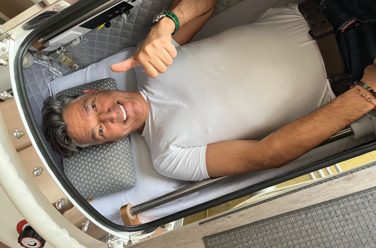 Először is fontos volt, hogy megismerkedjem a gép pontos működésével, amit nagyon egyszerűen úgy lehetne összefoglalni, hogy míg normál körülmények közötti 1 atmoszféra nyomáson 21 %-os oxigént lélegzünk be, a kapszulában néhány perc alatt 1,5 bar nyomást tudunk elérni és 36%-os tiszta oxigént jutattunk a szervezetbe. A Henry-féle gáztörvény alapján a magasabb környezeti nyomással több oxigén szívódik fel a vérplazmába, ami ezután eljutva testünk összes szervébe, sejtszinten regenerál. Ez a terápia nagyon hatékonynak mutatkozik például poszt-Covid tünetek kezelésében, az antiaging, vagyis öregedésgátlás területén, illetve sportsérülésekből való felépülésében, ahol legalább 55%-kal gyorsabb gyógyulást lehet elérni.