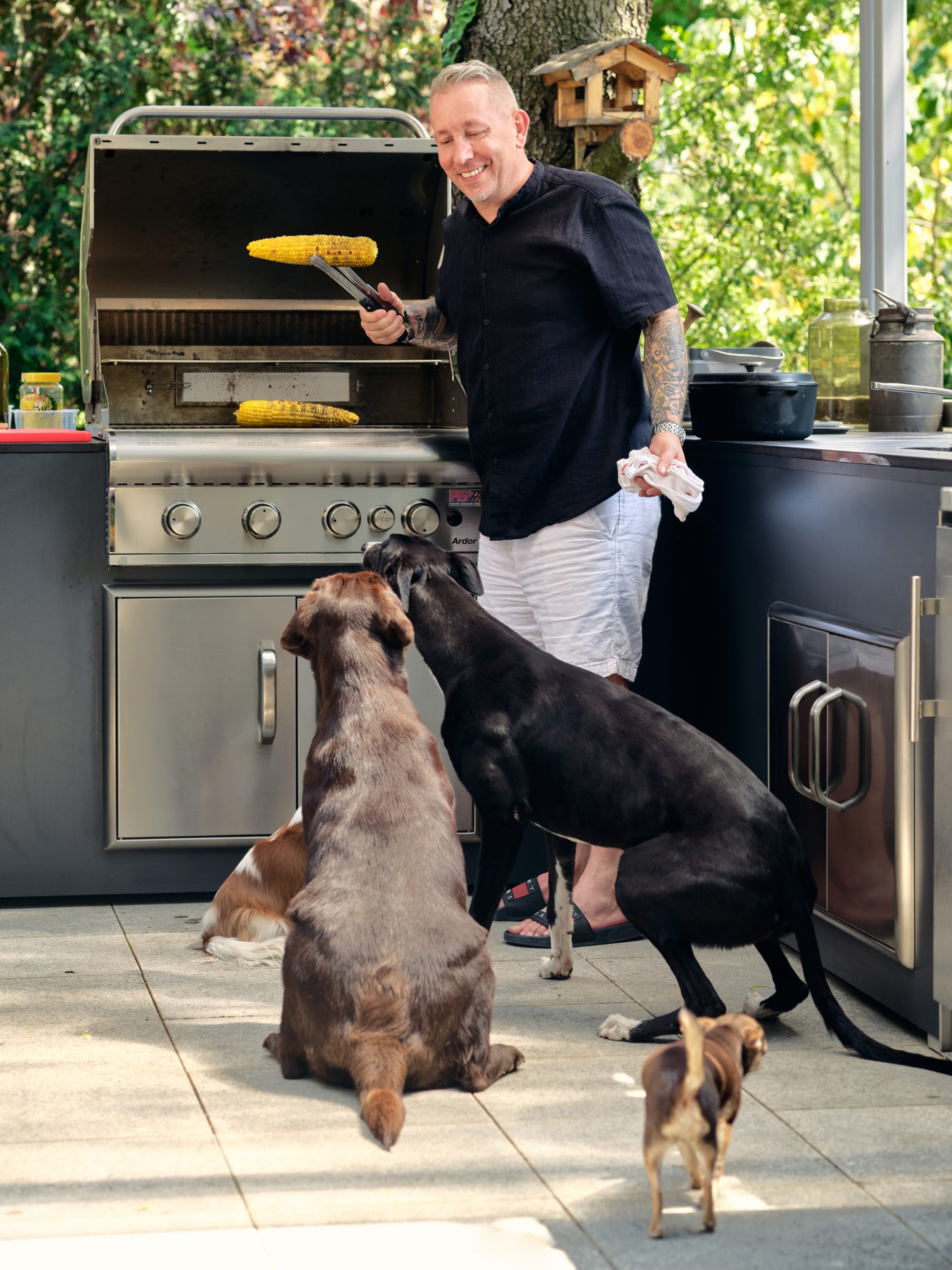Egyértelmű volt, hogy a kinti konyhát átköltöztetjük. Nagyon remélem, lesz még mód arra, hogy felavassuk ebben a szezonban is. Imádok grillezni, ehhez pedig olyan konyhát álmodtam meg, amely tökéletes arra, hogy sok embert ellásson, de akár forgatásokra is alkalmas. A legjobb mikor mind együtt vagyunk, a család, barátok megtöltik a kertet én pedig sütögetek nekik.